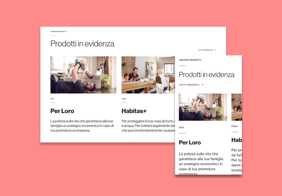 ITAS Assicurazione came to Imille to ask for a redesign for their website. The platform had been online already for several years and they wanted a more professional representation of the brand, to change the graphic interface to make it look modern, but above all, they were presenting many issues when it came to the organization of it, since the users where getting the wrong information. They wanted to know if the flows to get to the different products and client service were correct, because during the years the rate of people calling or writing to the wrong channel or service were very high.