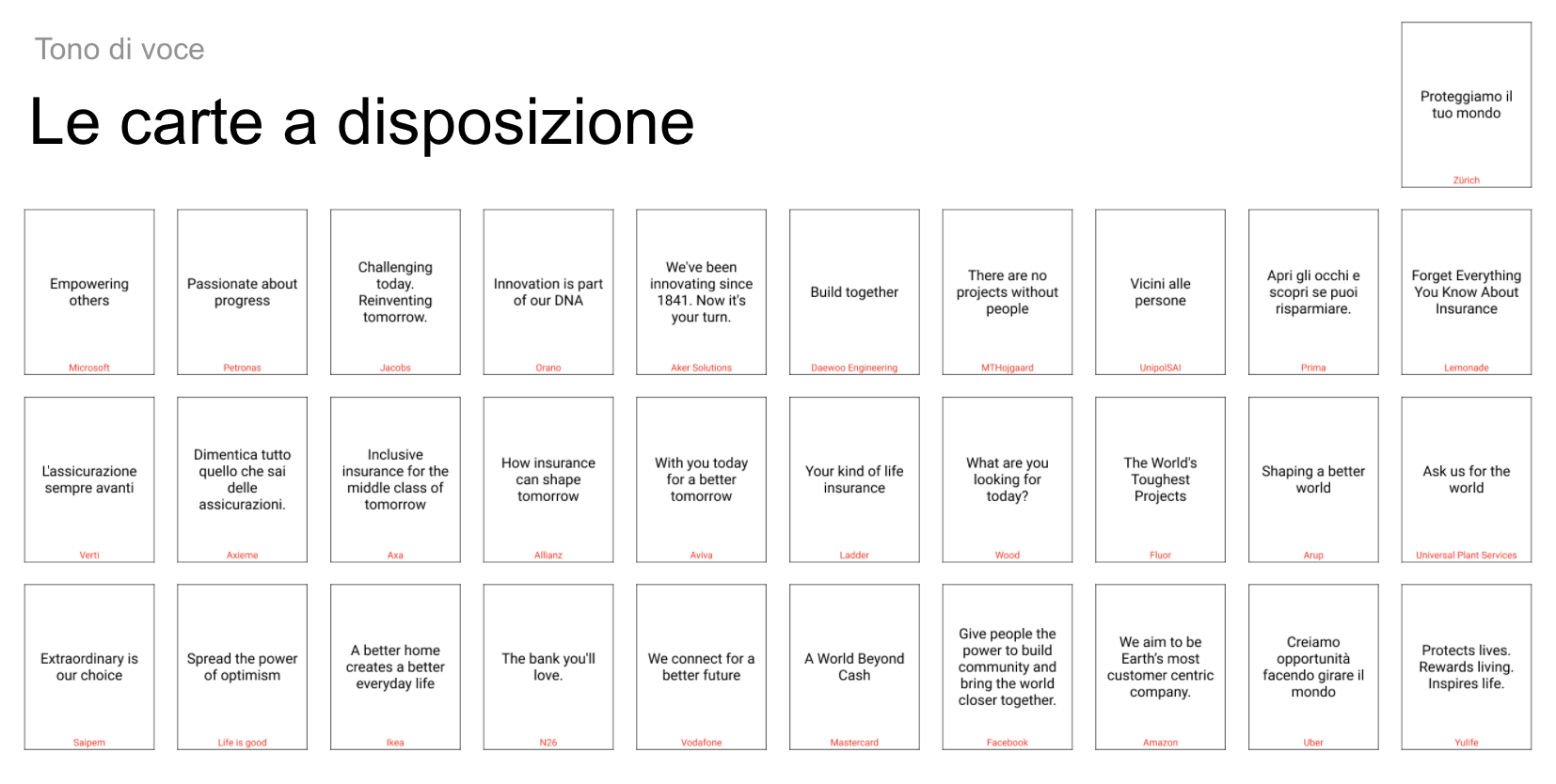 In order to figure out the brand, two card sorting exercises were conducted, one on iconographic style and the other on tone of voice.