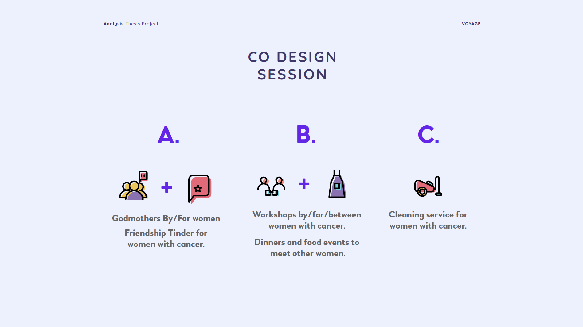 I made a codesign session and interviews with women that had been through breast cancer.